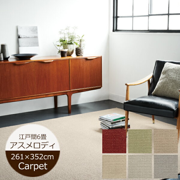 ウールカーペット アスメロディII 江戸間 6畳(約261×352cm) メリノウール 遮音 ループパイル 寝室 34サイズ ウール(新毛)100% 全6色 防炎、防虫、遮音、防音、抗菌、防ダニ オーダーカーペット イエスカーペット
