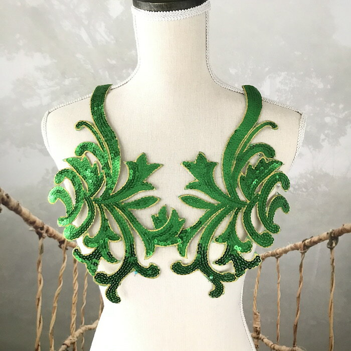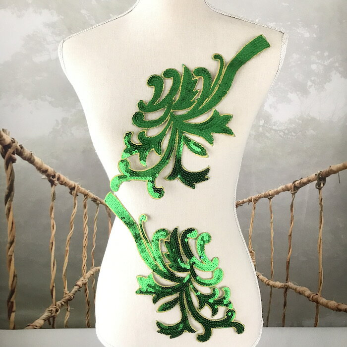 サイズ:H33cm W16cm カラー:グリーン・ゴールド 左右セット アイロン接着できます。