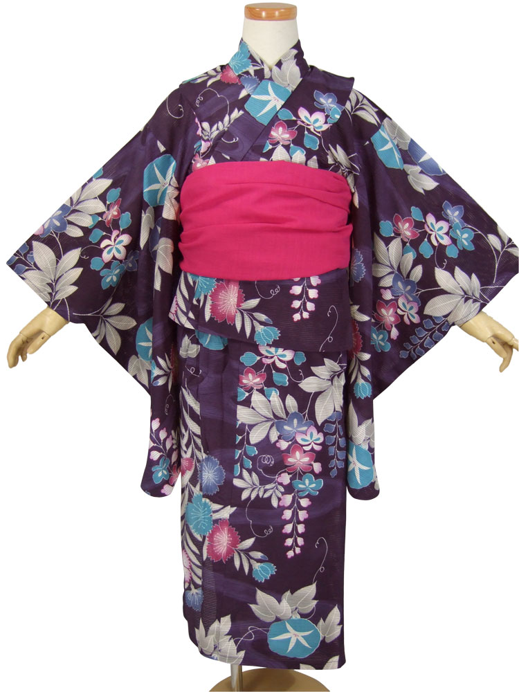 【こだわりの子供浴衣なら「撫松庵ジュニア」!】 紺地に藤やなでしこ、朝顔などが描かれたおしゃれな浴衣です。