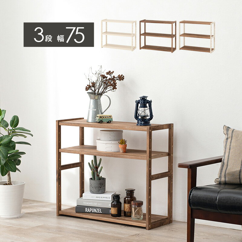 天然木 パイン材 オープンラック 幅75 3段 【送料無料】 木製 オープンシェルフ ナチュラル ブラウン ホワイトウォッシュ おしゃれ 北欧 白 収納 オープン棚 スリム 薄型 アンティーク インテリア ウッド 飾り棚 リビング キッチン コンパクト 3段ラック