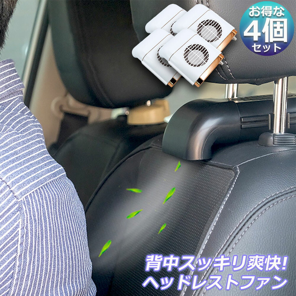 扇風機 4台セット 車載扇風機 車内 ミニファン 車座席ファン usb扇風機 強風量 3段階調節 背中スッキリ爽快 蒸れ解消 ヘッドレストファン 前後部座席用 ドライブ 車 運転 蒸れる 暑い 汗 涼しい 風 ファン シガーソケット 快適 シート ヘッドレスト 空気循環 熱中症対策